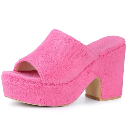 Allegra K Women's Open Toe Platform Slides Chunky Heel Hot Pink Sandals 6.5 m US