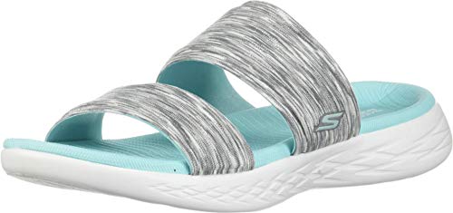 Skechers Women's ON-The-GO 600-BEDAZZLING Slide Sandal, Gray/Aqua, 11 M US